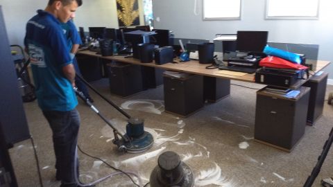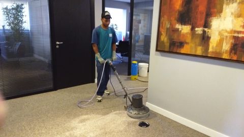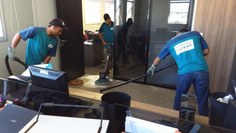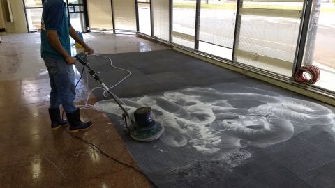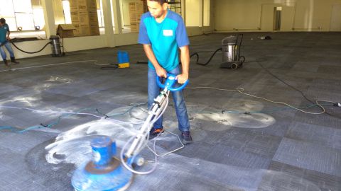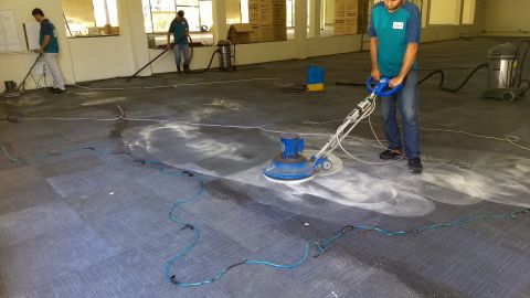3° passo - Usa-se a maquina enceradeira com o bonnet, que ajuda na remoção do encardido e manchas existentes.